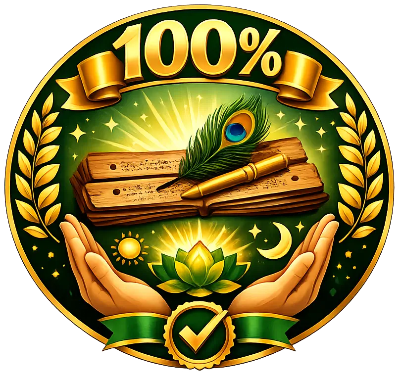 We are committed to delivering 100% satisfaction through accurate, authentic, and soul-guided Nadi astrology readings. Every session is conducted with care, confidentiality, and spiritual integrity. Thousands of clients from around the world have experienced clarity, healing, and transformation through our readings. Your trust and well-being are our top priority ensuring a meaningful and deeply fulfilling experience with every consultation.